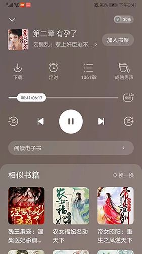 6、如果看累了的话,我们还可以使用听书模式来感受不一样的体验,