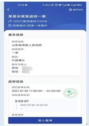 进入后可以看到庭审的具体信息,点击“加入庭审”。