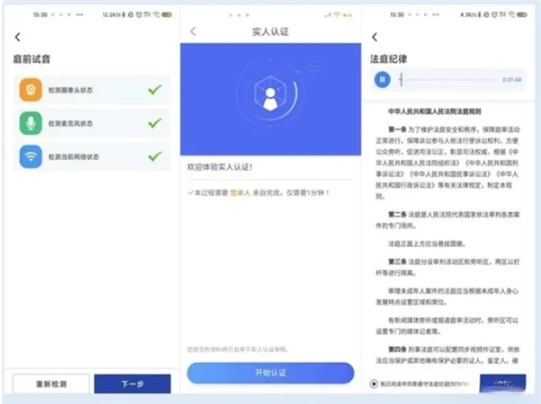 根据提示进行庭前试音,提前检查摄像头、麦克风及网络状态是否正常。