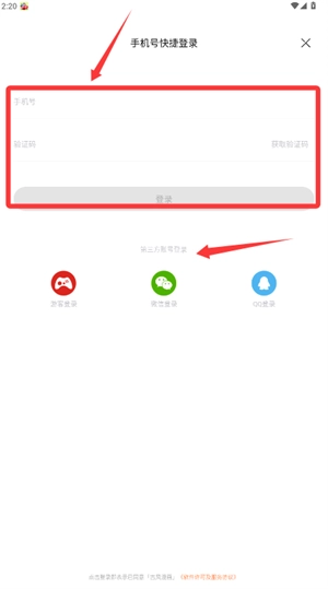 2、在登录页面,可选择手机验证码登录或微信等第三方账号绑定。