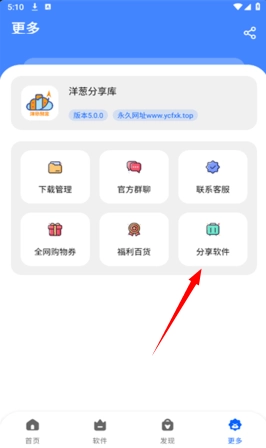 跳转到新页面后,你会看到“分享软件”按钮,点击该按钮就能完成分享操作。