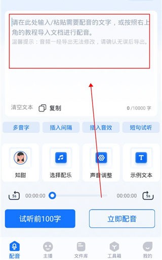 1、第一步,我们先启动软件,接着在文本输入框里填写需要配音的文字内容