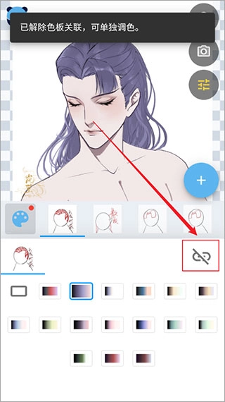 4、再回到刚才的调色板,点击它(点击空白区域即可展开,展开后能看到+号),然后为调色板添加一个新的颜色。