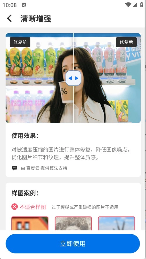 对压缩后的模糊图像进行智能快速去噪处理,优化图像的纹理细节,让画面呈现出更自然清晰的效果。