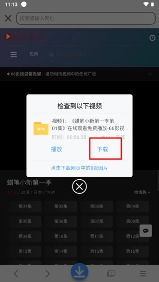 4、就可以自动识别连接中的视频,点击即可。