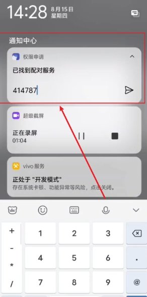 10、下拉打开“通知中心”的权限申请,输入6位配对码