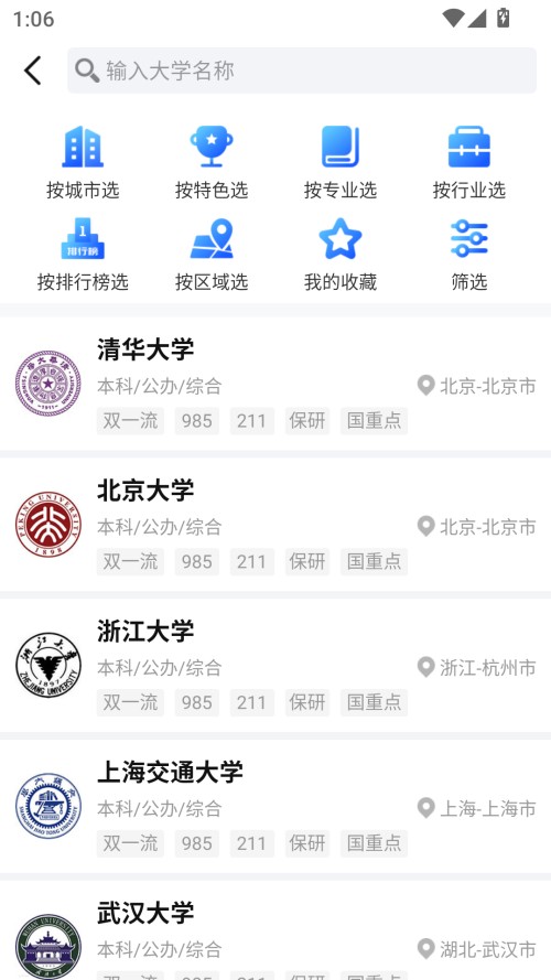 1、打开最新版的报考大学应用,登录个人账号,该平台为用户提供了所有大学的详细信息。