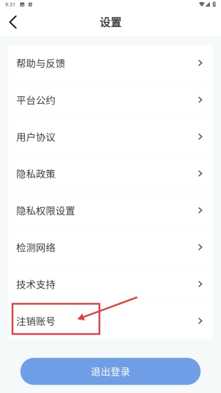3、在设置页面,点击注销账号选项,查看账户注销说明。