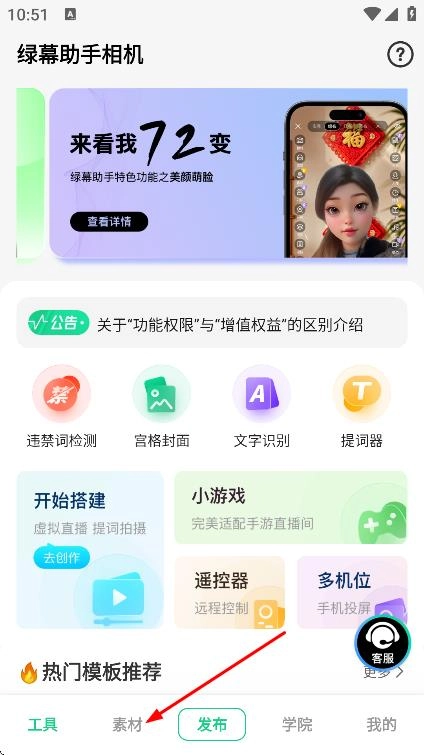 1、轻松打造专业虚拟直播场景:只需准备两部手机和一块绿布,就能快速搭建起专业级的虚拟直播间,全程无需其他复杂设备辅助,极大降低了虚拟拍摄的上手难度,让普通用户也能毫无压力地开启虚拟创作之旅。