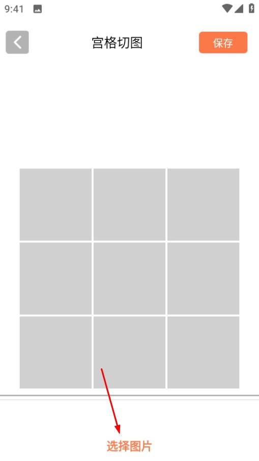 2、在宫格切图页面,点击选择图片,弹出选择切图类型选项。