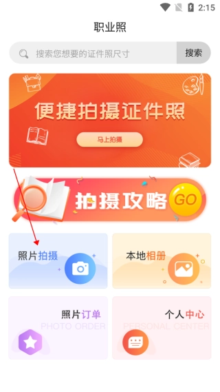 1. 开启火山证件照,点击照片拍摄选项。