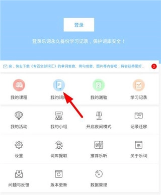 2、点击个人页面里的“我的词库”选项,即可进入词库页面