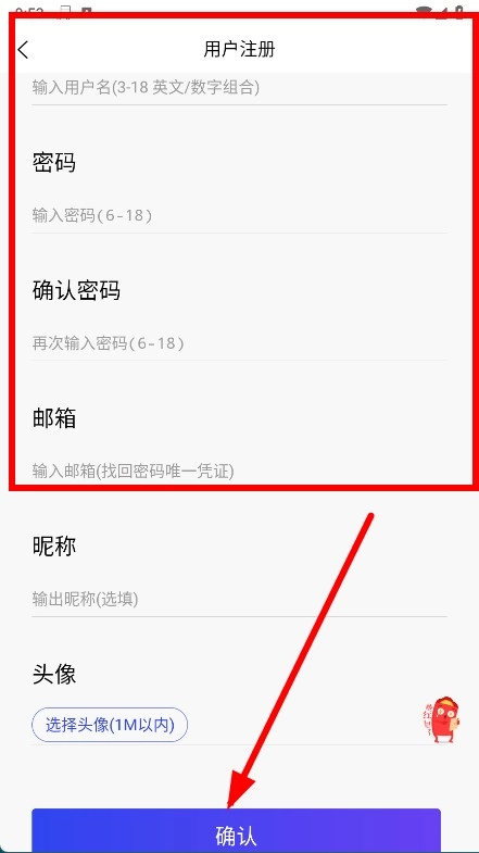 4、依次输入用户名等信息,昵称选填,完成后点击确认,即可完成注册。