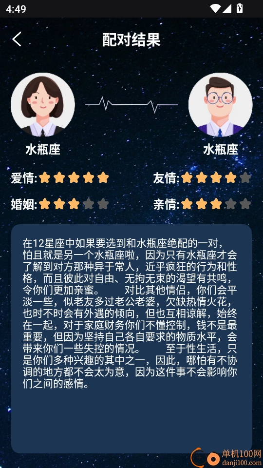 5.之后大家就可以获取星座的详情配对结果了