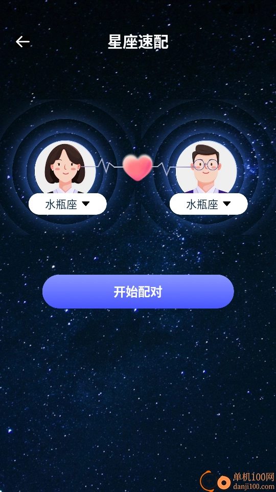 4.然后大家输入男女的星座后,点击“开始配对”按钮进入下一步