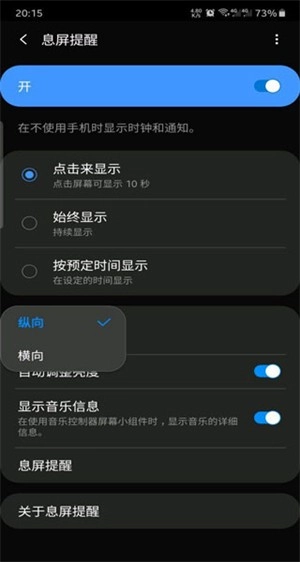 2、还有一种方法相对复杂些,得在设置里找到息屏提醒功能,把方向调整为纵向,如此就能实现横屏设置了。