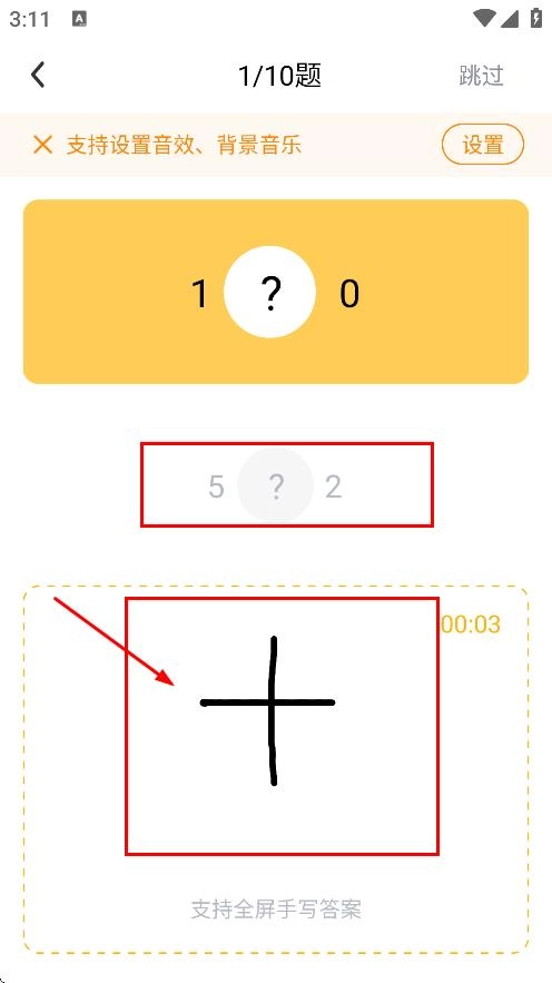 4、在题目练习页面,可在指定区域手写答案,进行口算练习。