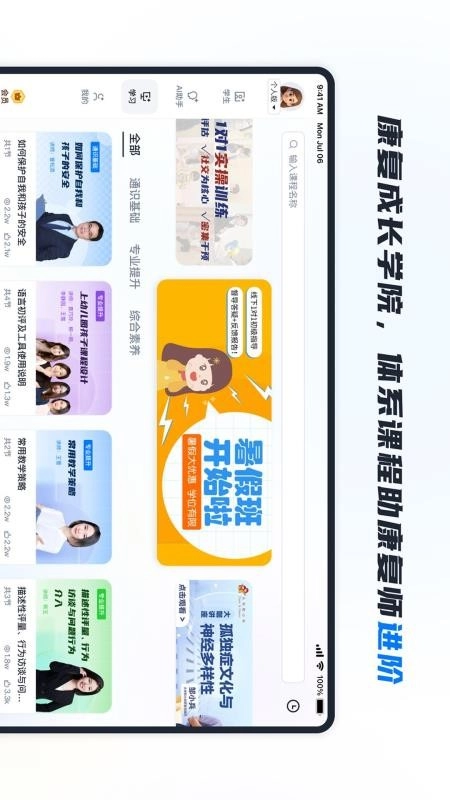 汇集诸多课程资源,覆盖诸多板块,帮助康复师高效提升自己的专业水平;