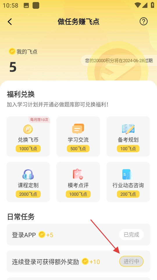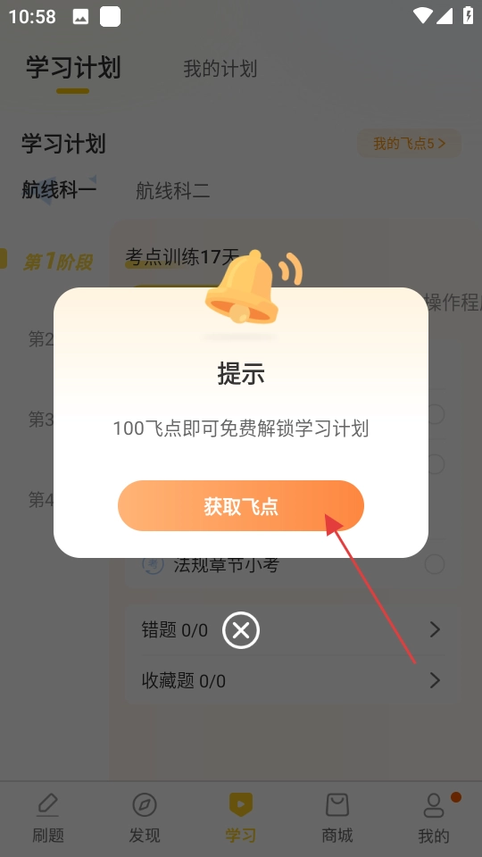 4、可通过完成日常任务方式获取飞点,积累足够飞点后可解锁学习计划。