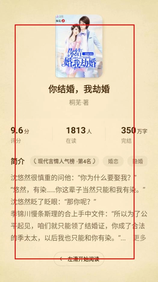 2、在淘小说推荐榜页面,点击你结婚我劫婚,进入该小说详情页。