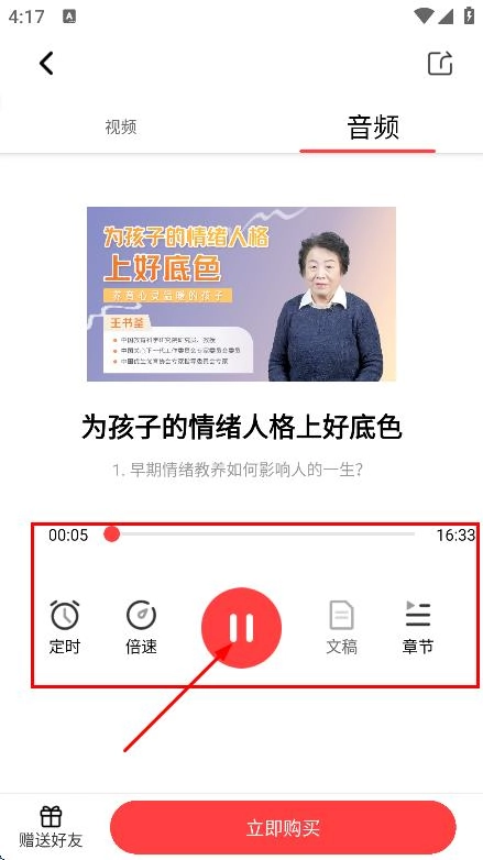 4、在课程播放页面,可点击暂停按钮暂停播放,还能使用定时与倍速等功能。