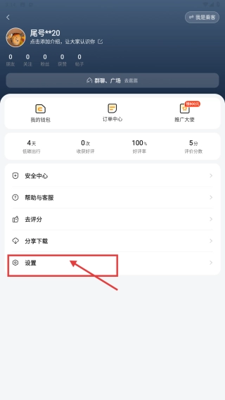 2、在个人中心,点击设置选项,进入设置界面。