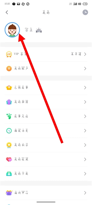 1、打开洪恩动画故事,进入首页,点击左上角的个人头像图标。