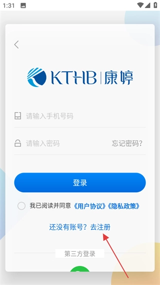 2、在登录页面,点击还没有账号去注册,进入注册页面。