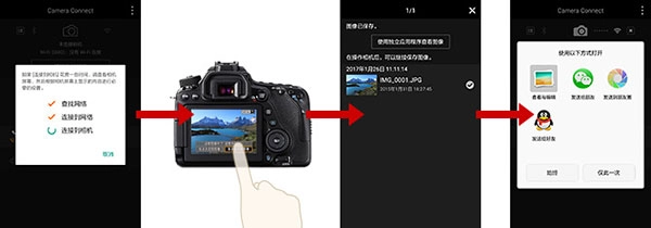 4、使用蓝牙功能启用的相机通过配对(或使用NFC功能启用的相机通过触控操作)切换到Wi-Fi连接。