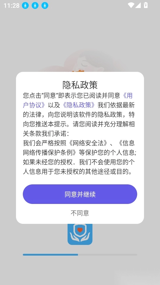 1、首先打开应用点击“同意并继续”按钮来进入中。