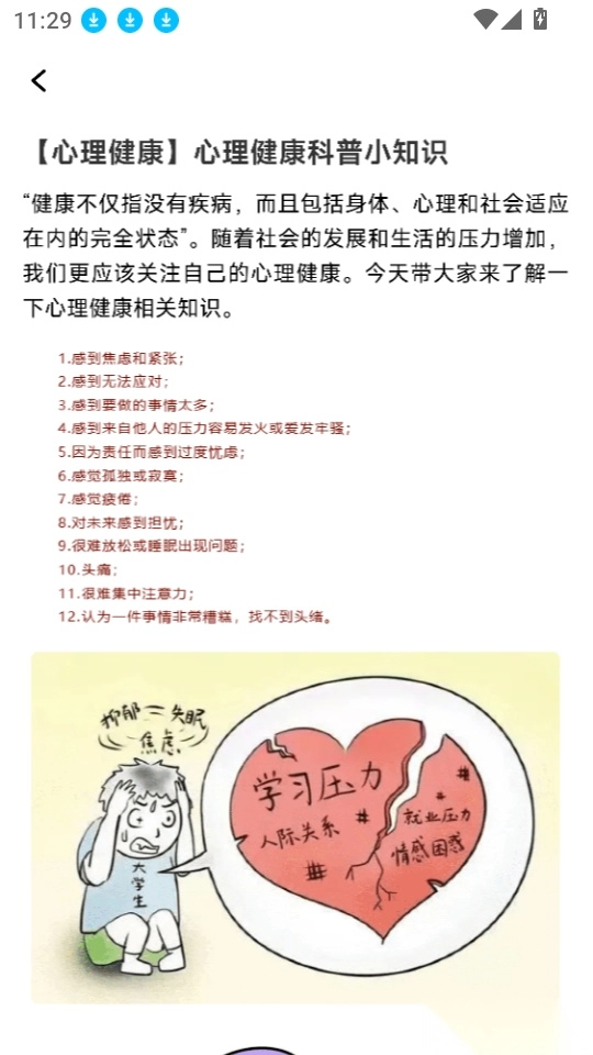2、丰富的心理健康科普知识都可查阅,提升自己的心理健康能力。