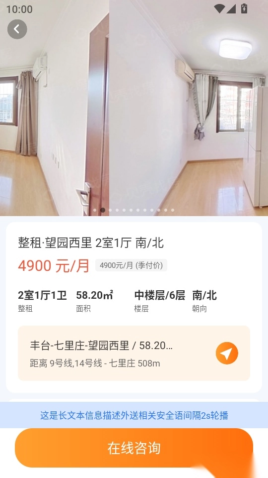 4.接着进入租赁房源的详情介绍页面,点击“在线咨询”按钮,以此进入下一步操作。