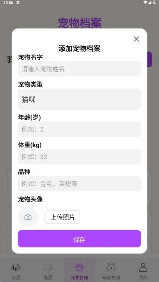 猫狗翻译官怎么添加宠物档案: