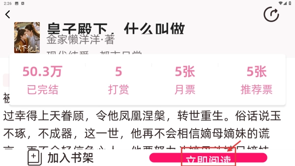 3、在小说详情页,点击立即阅读按钮,进入小说章节页开始阅读。
