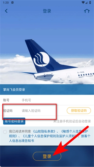 4、待收到验证码后,将其输入到验证码输入框中,勾选后点击登录按钮,完成注册登录。