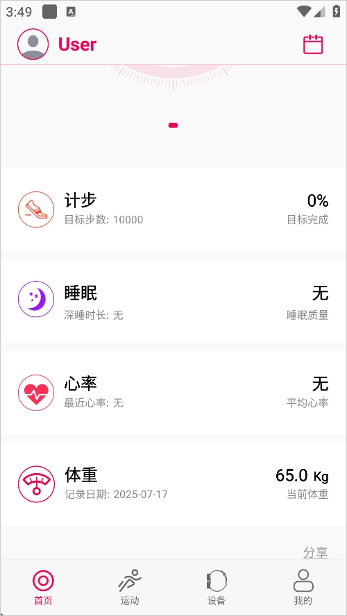 5、设备匹配成功后你就可以在手机上时时看到自己的健康信息以及运动数据