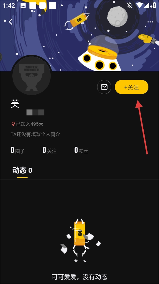 4、进入用户主页,点击【+关注】,完成用户关注操作。