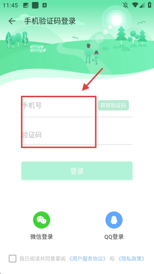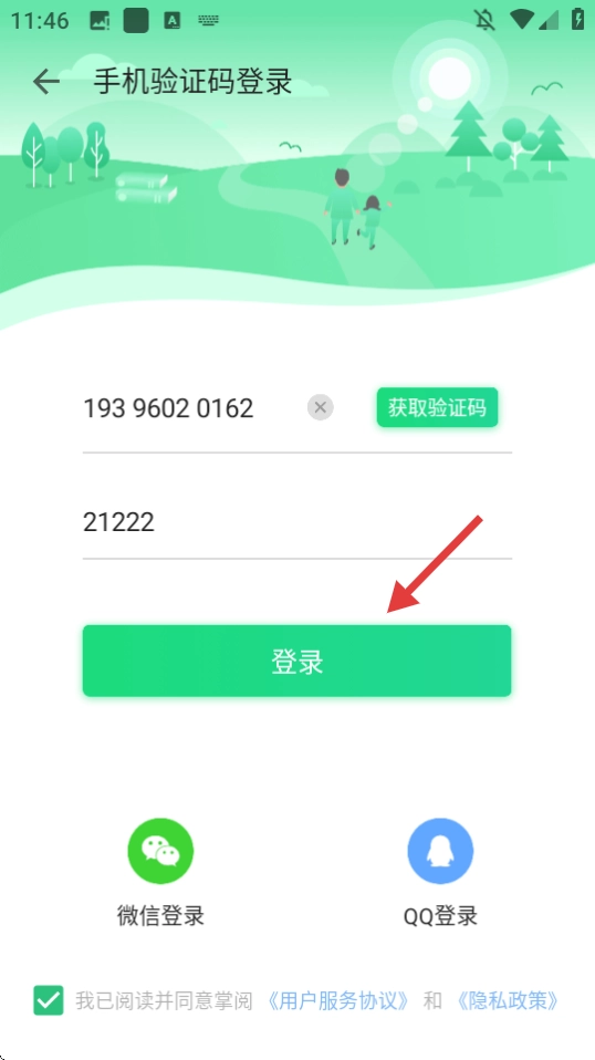 3、输入手机号和验证码。
