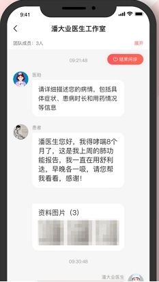 【在线接诊】开始接诊后,患者可在用户版看到在线医生,随时进行问诊咨询。