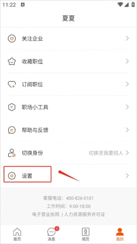 1、在“我的”页面选择“设置”功能。