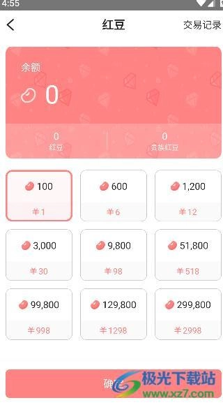 5、红豆的充值页面这里一元就有100哦,支付方式可微信和支付宝。