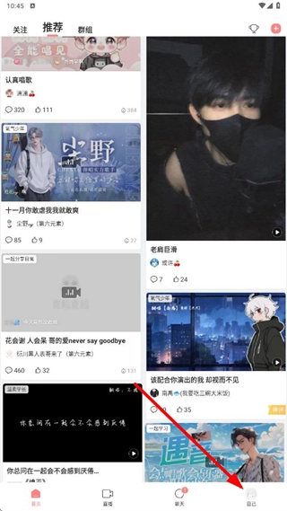 1、打开【克拉克拉】软件,在【推荐】界面点击右下角的【我的】按钮,就能进入个人页面啦。