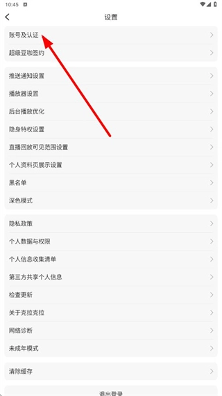 3、在设置中,点击【账号及认证】选项,进入相关设置页面呢。