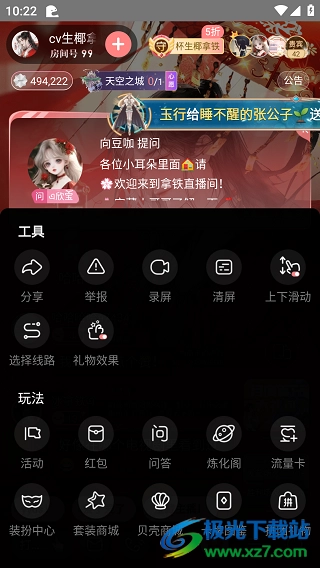 3、在里面随便点一个直播进去,或者挑自己喜欢的进入,点击最下方的三横设置按钮,就能到这个页面啦;