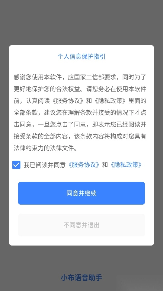 1. 首先打开软件,仔细阅读“个人信息保护指引”,随后点击“同意并继续”按钮进入下一步。