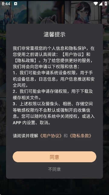 1、在本站并安装 UGAI 绘画软件,打开后先阅读并同意用户协议与隐私政策,完成基础授权。