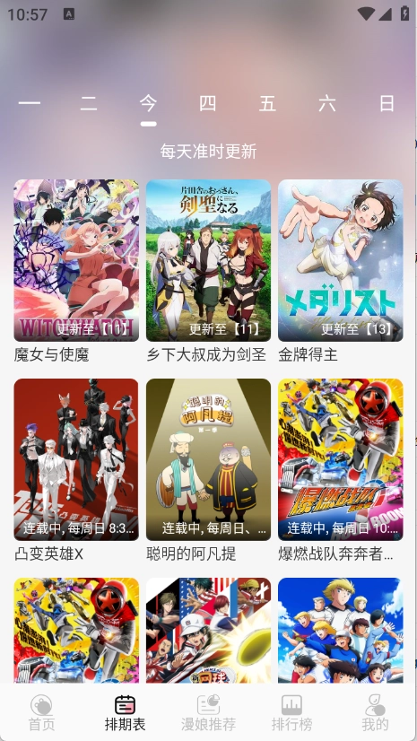 3、“排期表”为用户提供每天动漫更新情况。