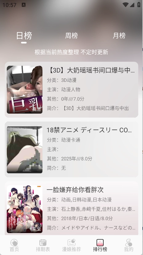 4、“排行榜”根据当前热度将动漫进行排序。