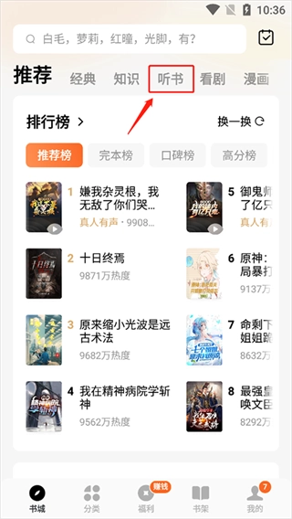 2、然后在“听书”界面就可以选择自己喜欢的书;