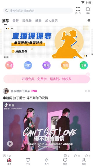 5、平台汇聚海量免费舞蹈教学视频与原创作品,供你随心学习、反复练习;舞蹈明星名师打造的精品付费课程,附带真实评价与品质保障,让你安心选购。